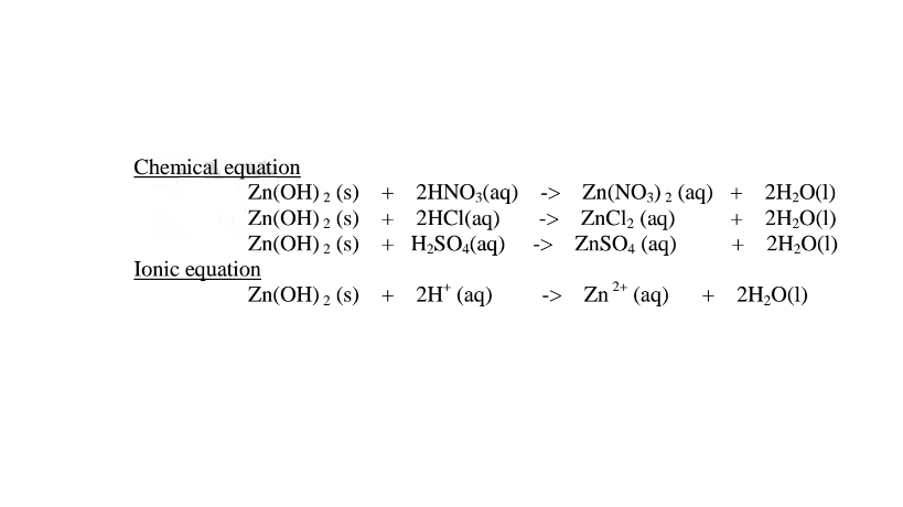 (i) when reacting with nitric(V)acid, the hydroxide shows basic properties. It reacts with an acid to form a simple salt and water only.