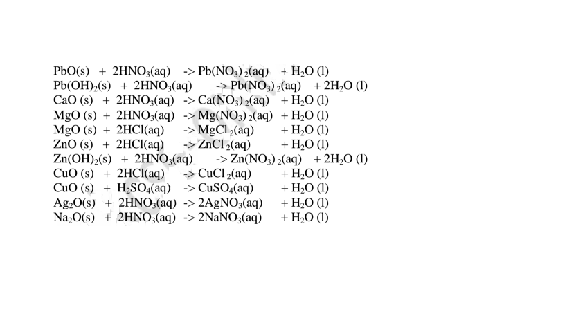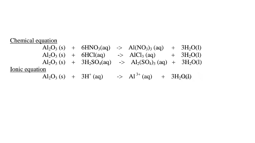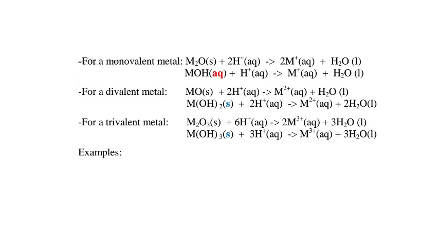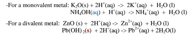 (vi)neutralize metal oxides/hydroxides to salt and water only. i.e. Ionically:
