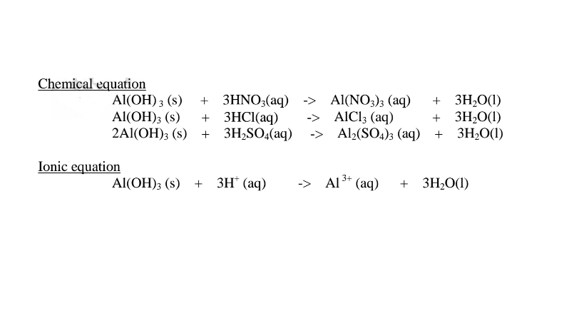 A13 +(aq) + 3OH- (aq) -> Al(OH)3(s)