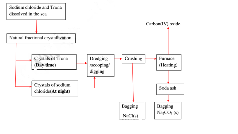 (i) Lake Magadi during extraction of soda ash(Sodium carbonate) from Trona(sodium sesquicarbonate)