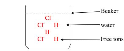 Hydrochloric acid dissociates/ionizes in water to free