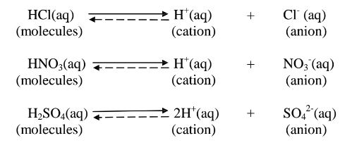 i. Strong acids exists more as free H+ ions than molecules. e. g.