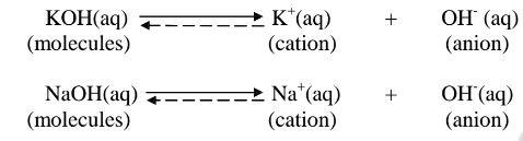 ii. Strong bases/alkalis exists more as free OH' ions than molecules. e.g.