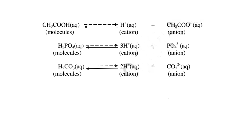 i. Weak acids exists more as molecules than as free Hl ions. e.g.