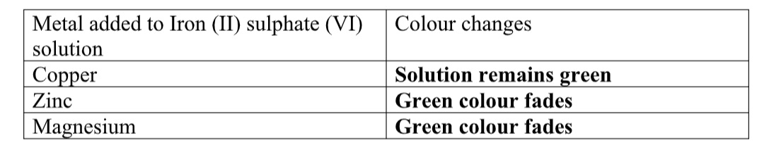 (iv) React with metals to produce /evolve hydrogen gas and a salt. i.e.