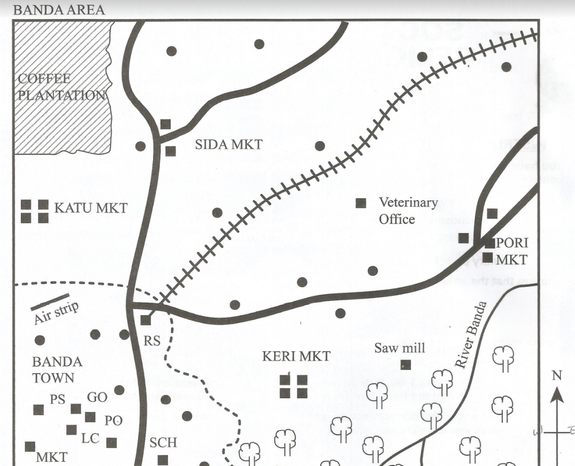 7. What evidence on the map shows that Banda town is an administrative centre?