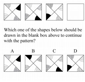 50. The figure below shows a pattern of shapes. Which one of the shapes below should be drawn in the blank box above to continue with the pattern?