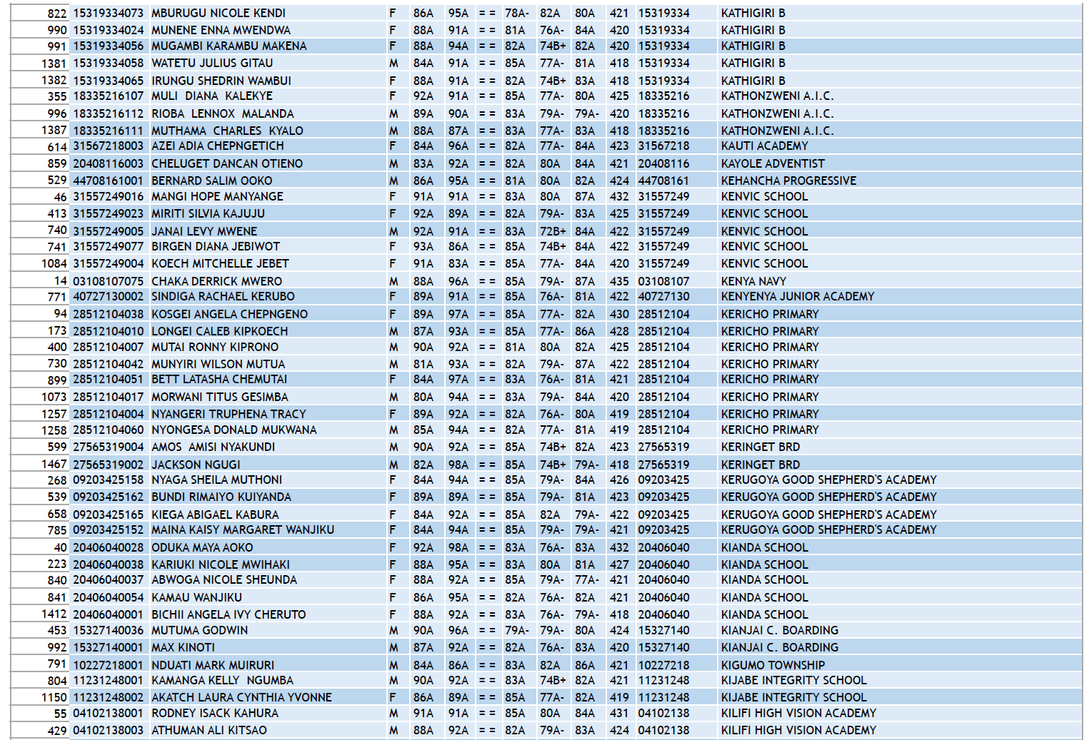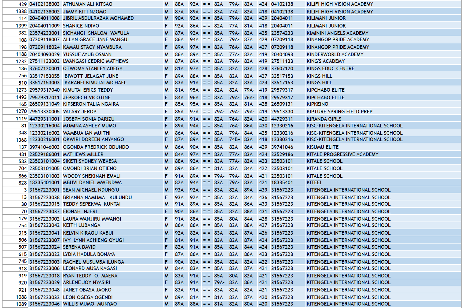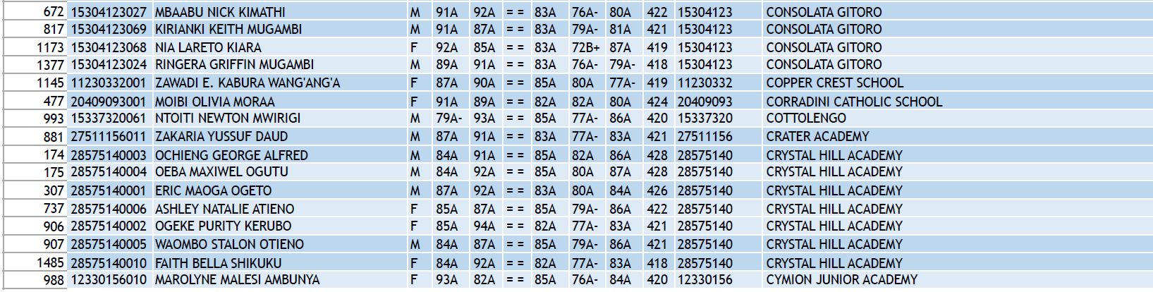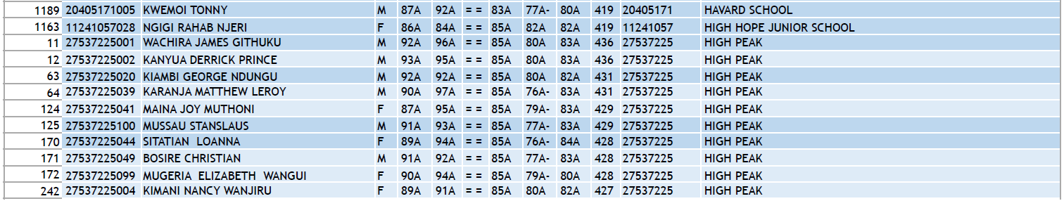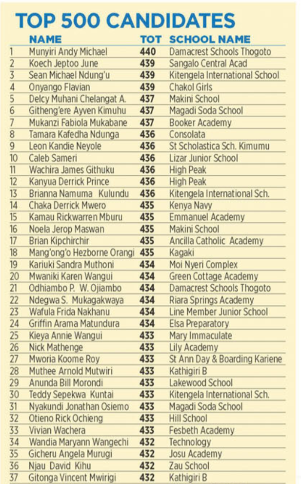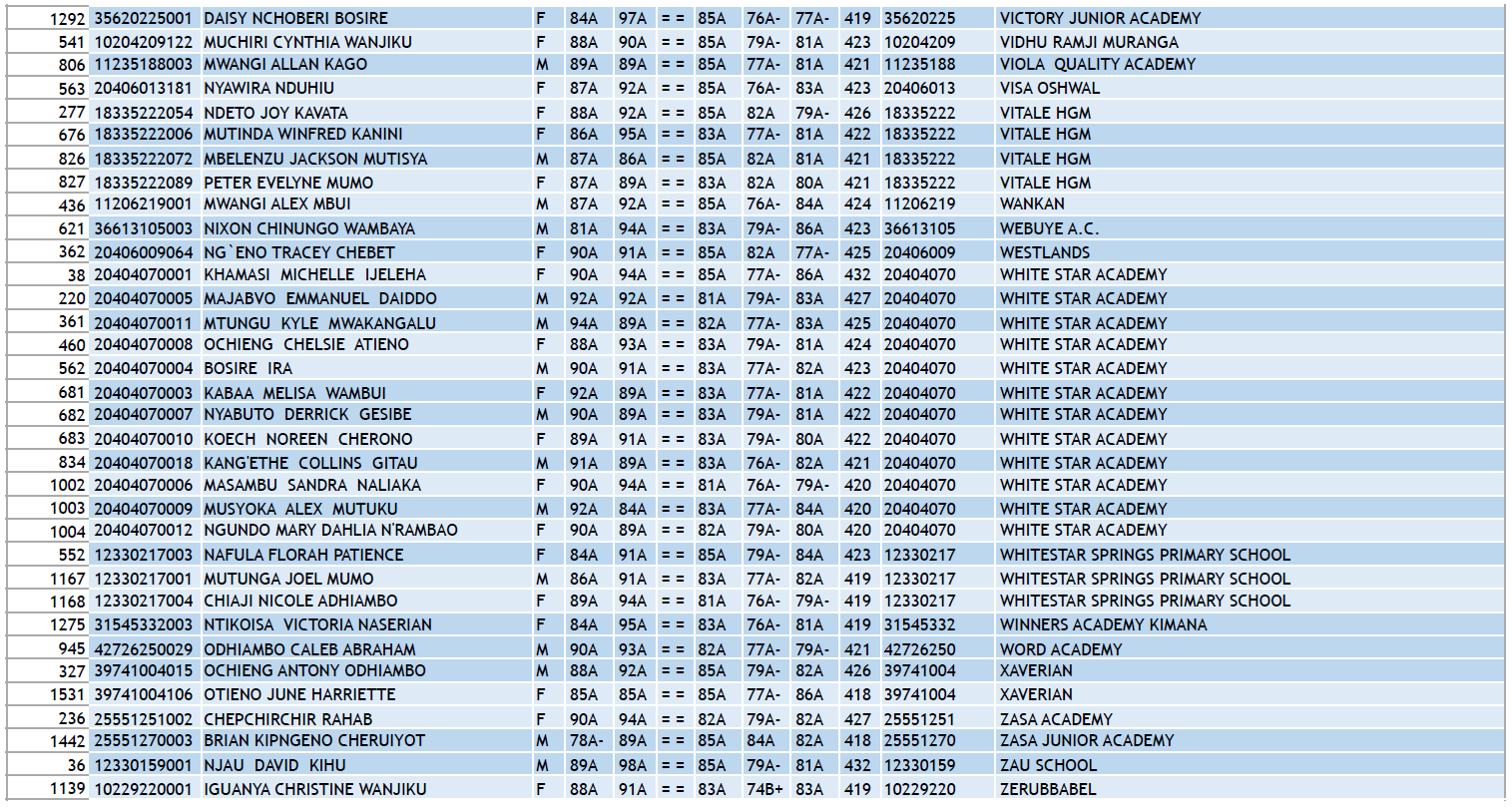 KCPE 2023 - List of All Students With 400 and Above - And the Schools They Came From!