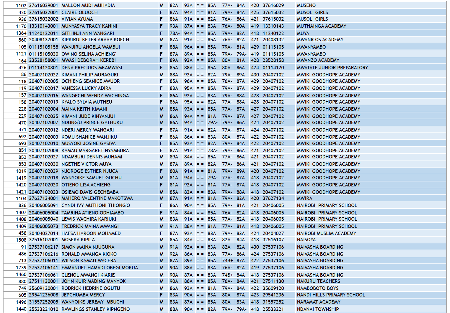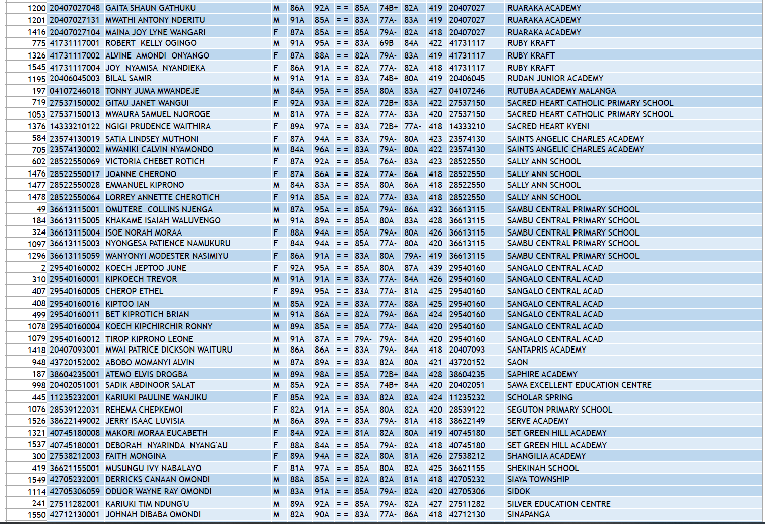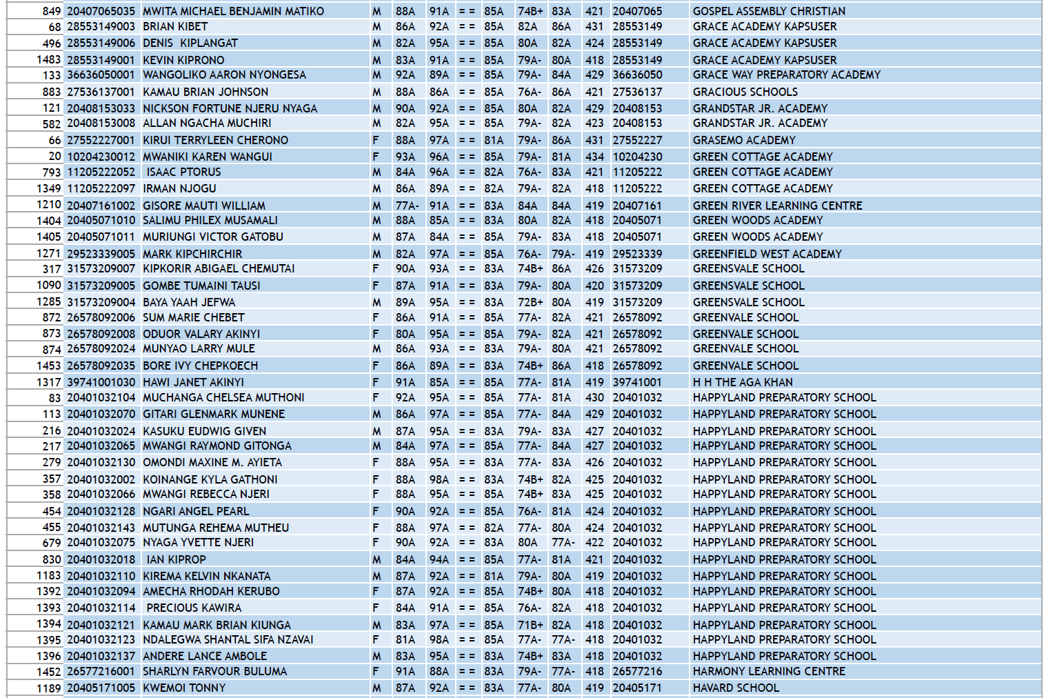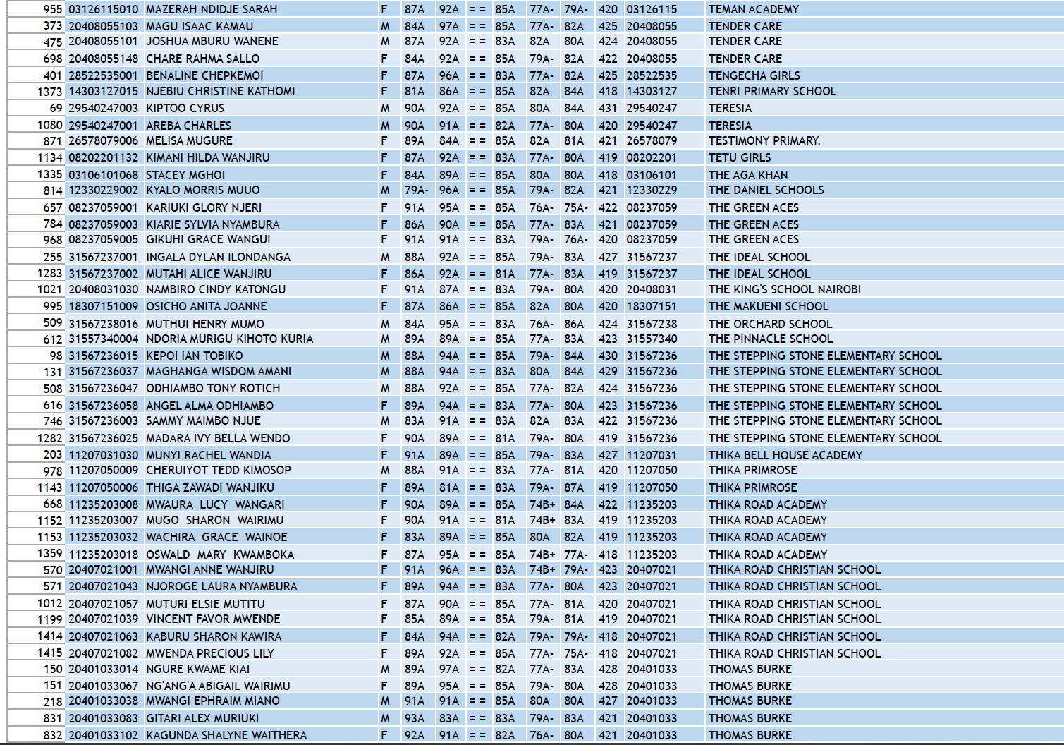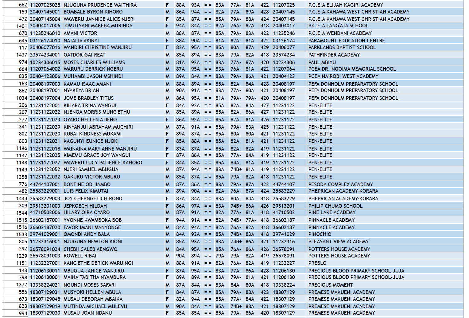 KCPE 2023 - List of All Students With 400 and Above - And the Schools They Came From!