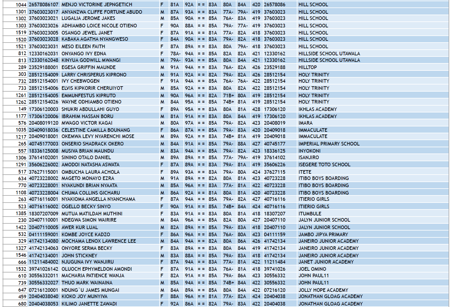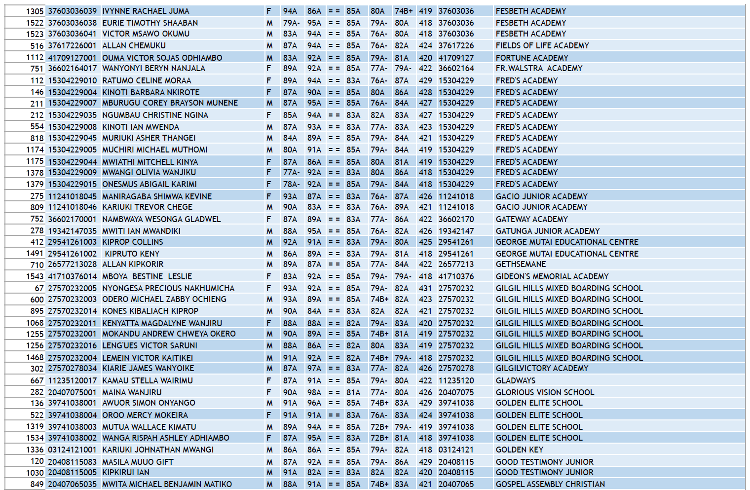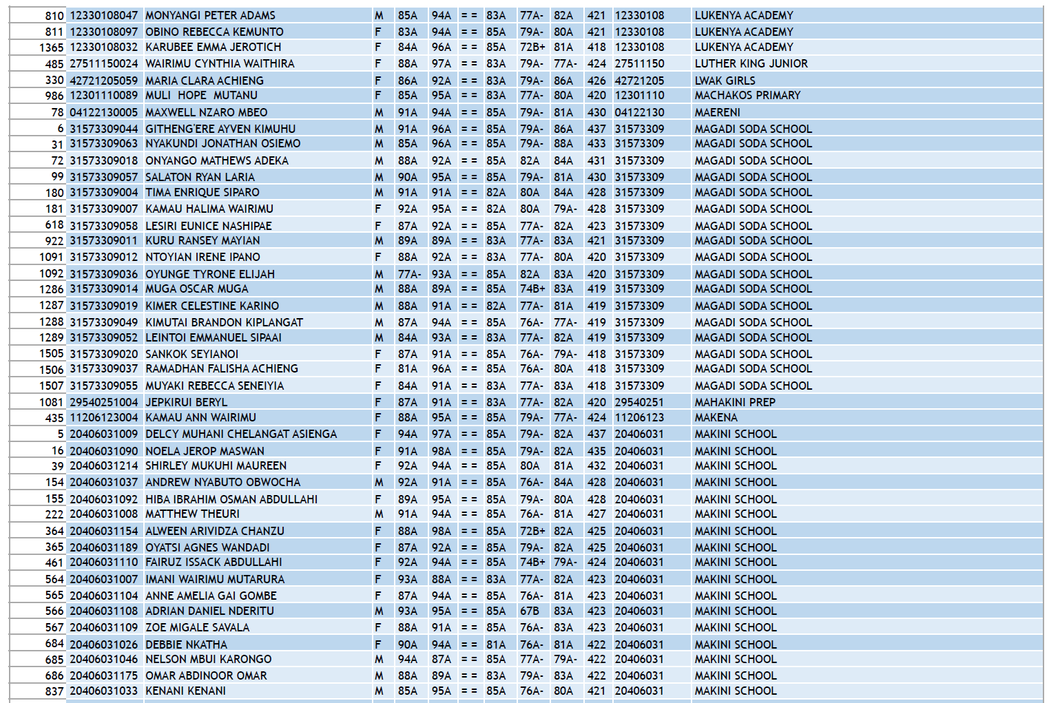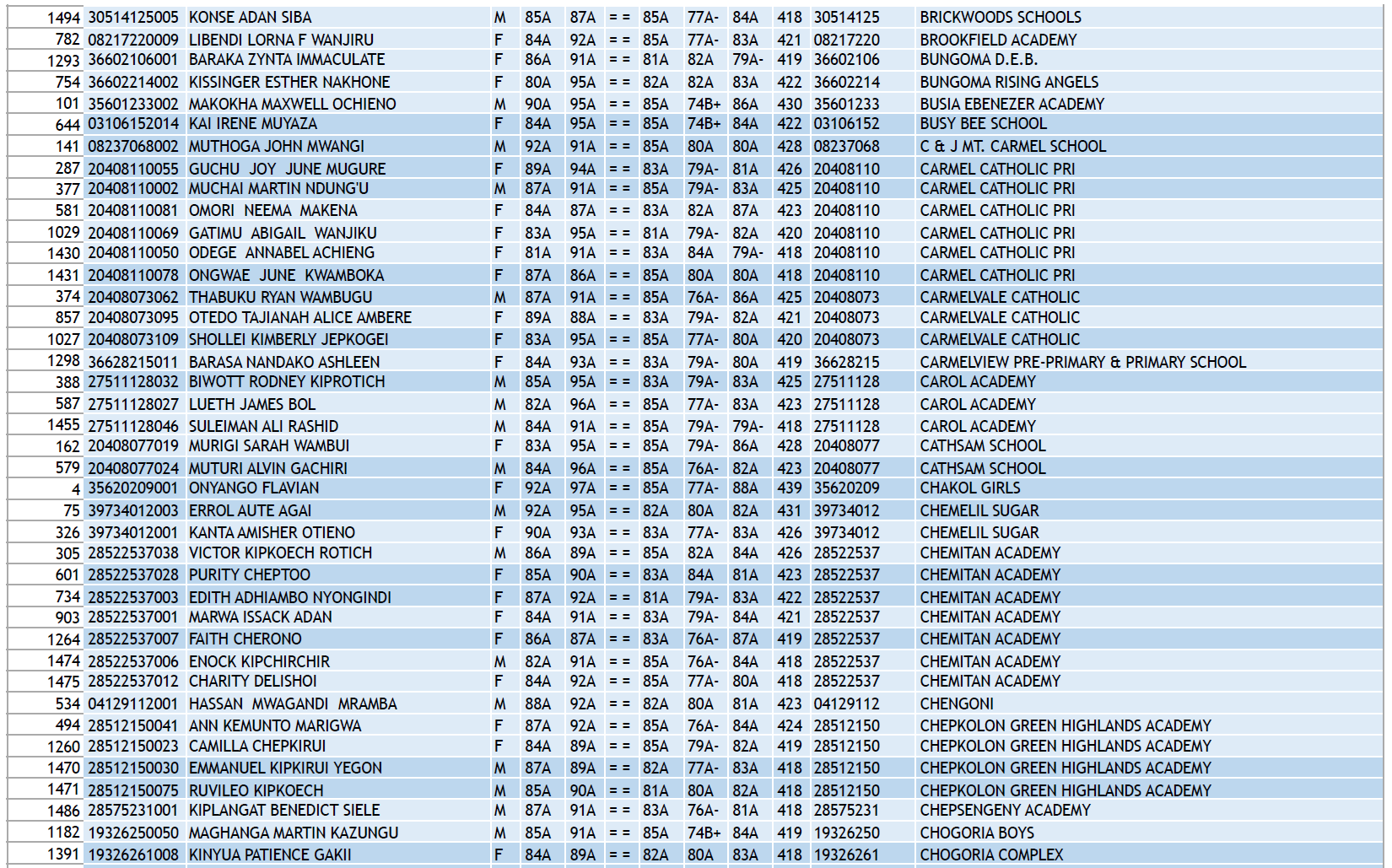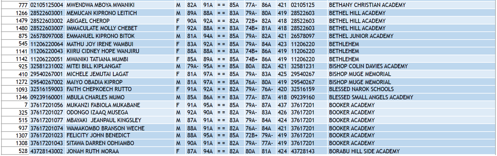 KCPE 2023 - List of All Students With 400 and Above - And the Schools They Came From!