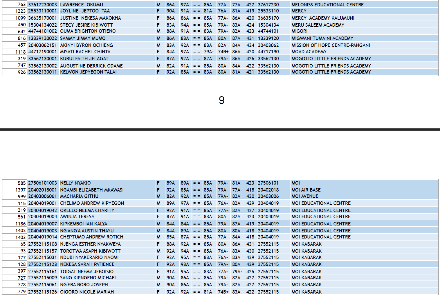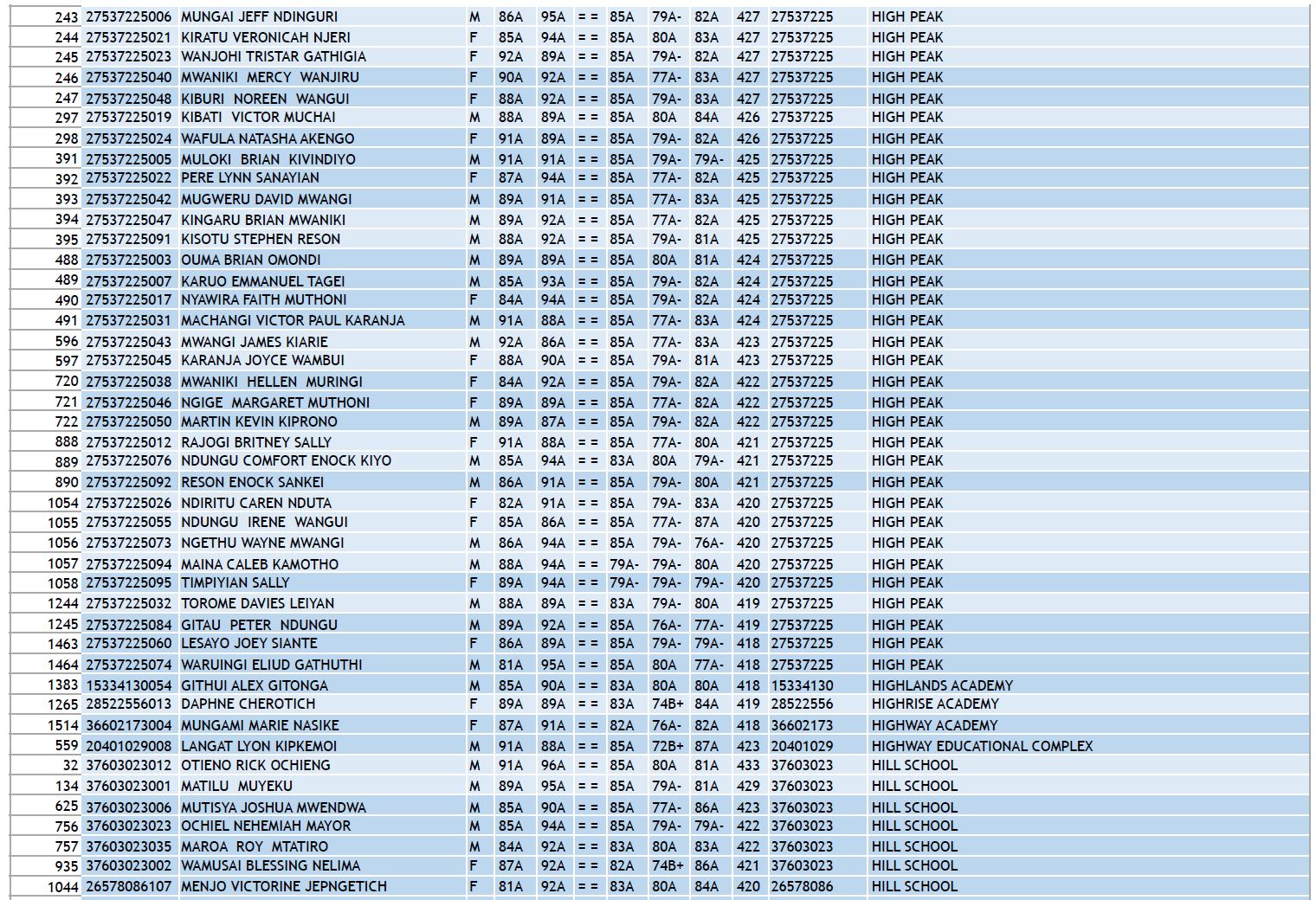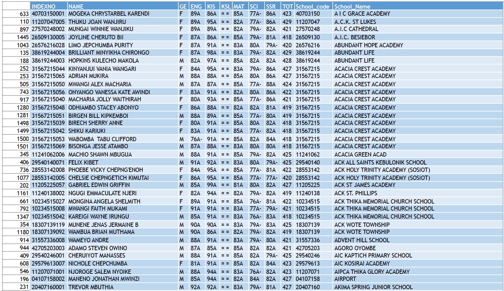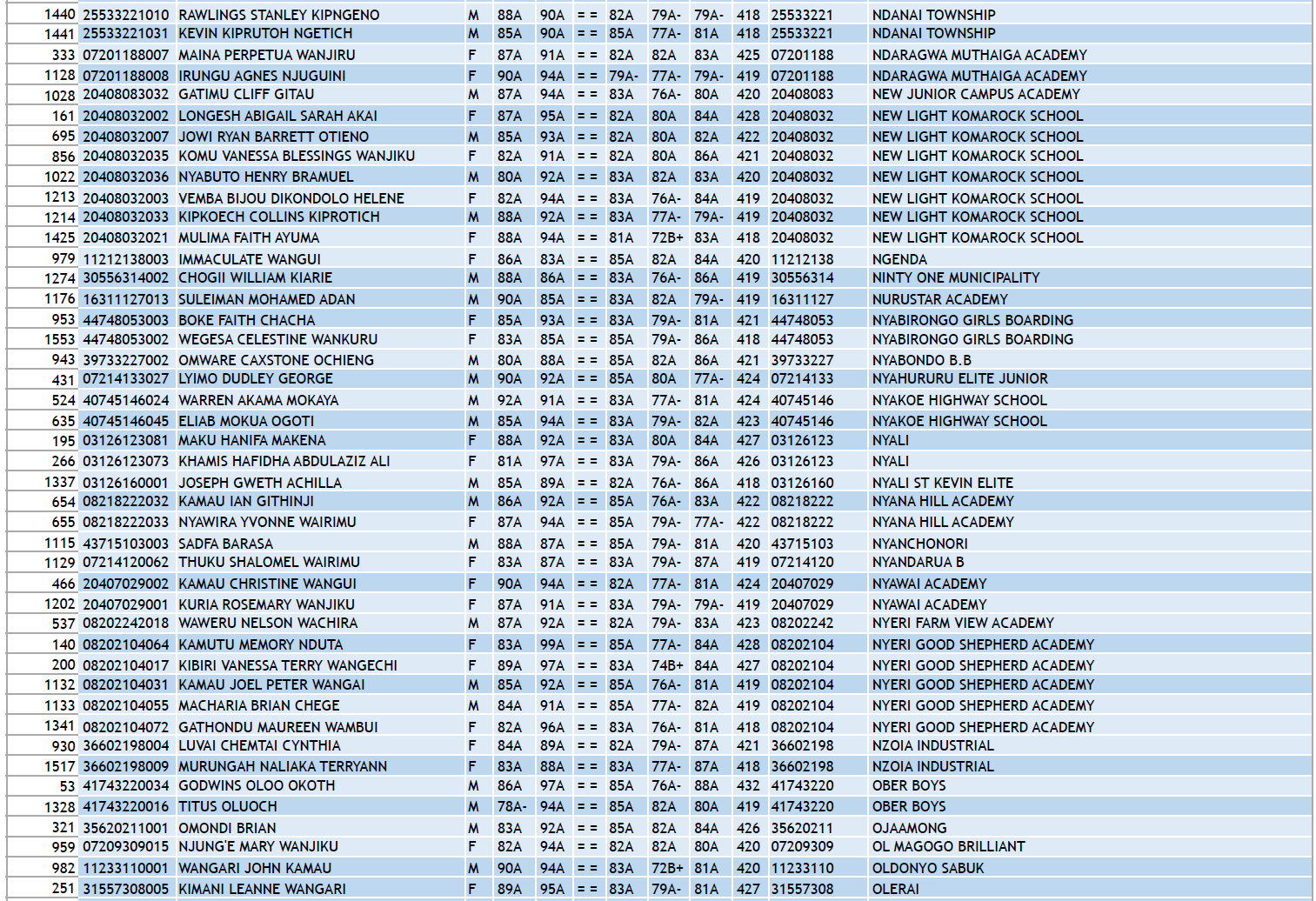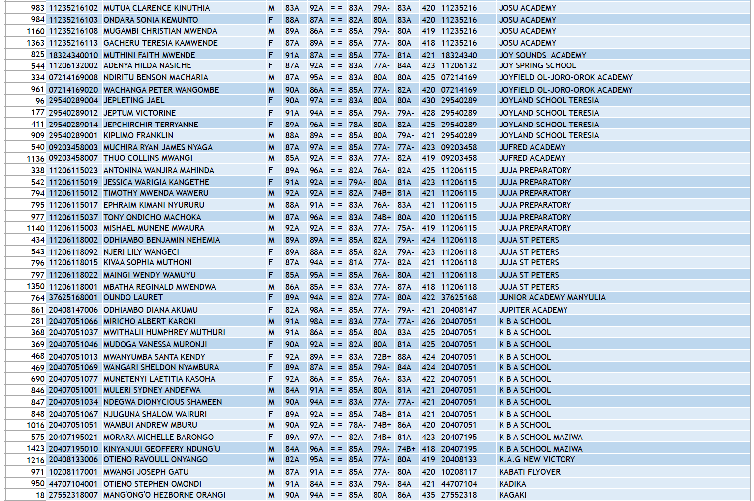 KCPE 2023 - List of All Students With 400 and Above - And the Schools They Came From!
