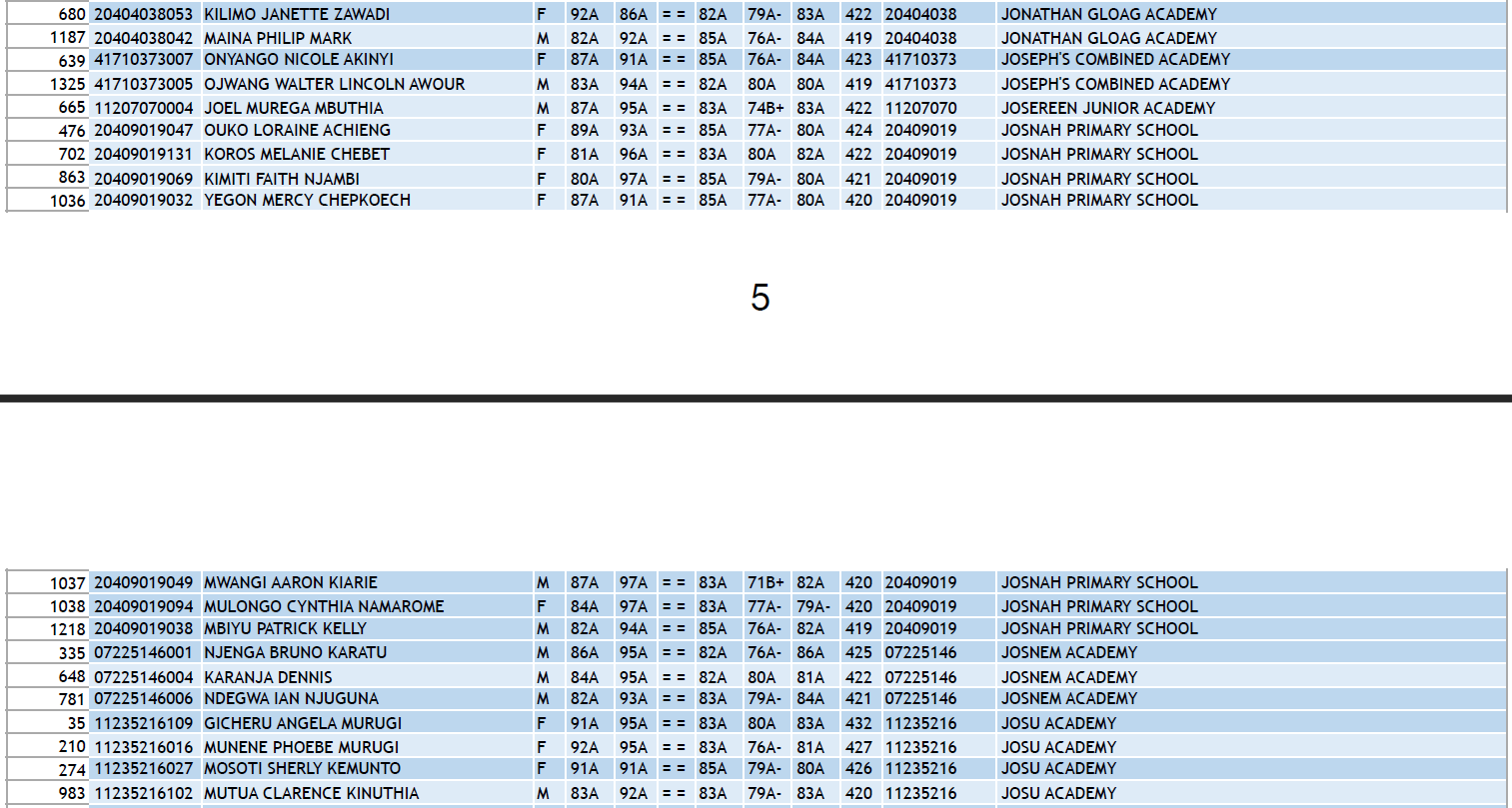 2023 Results - KCPE List of Top 5 Public Schools in Kenya