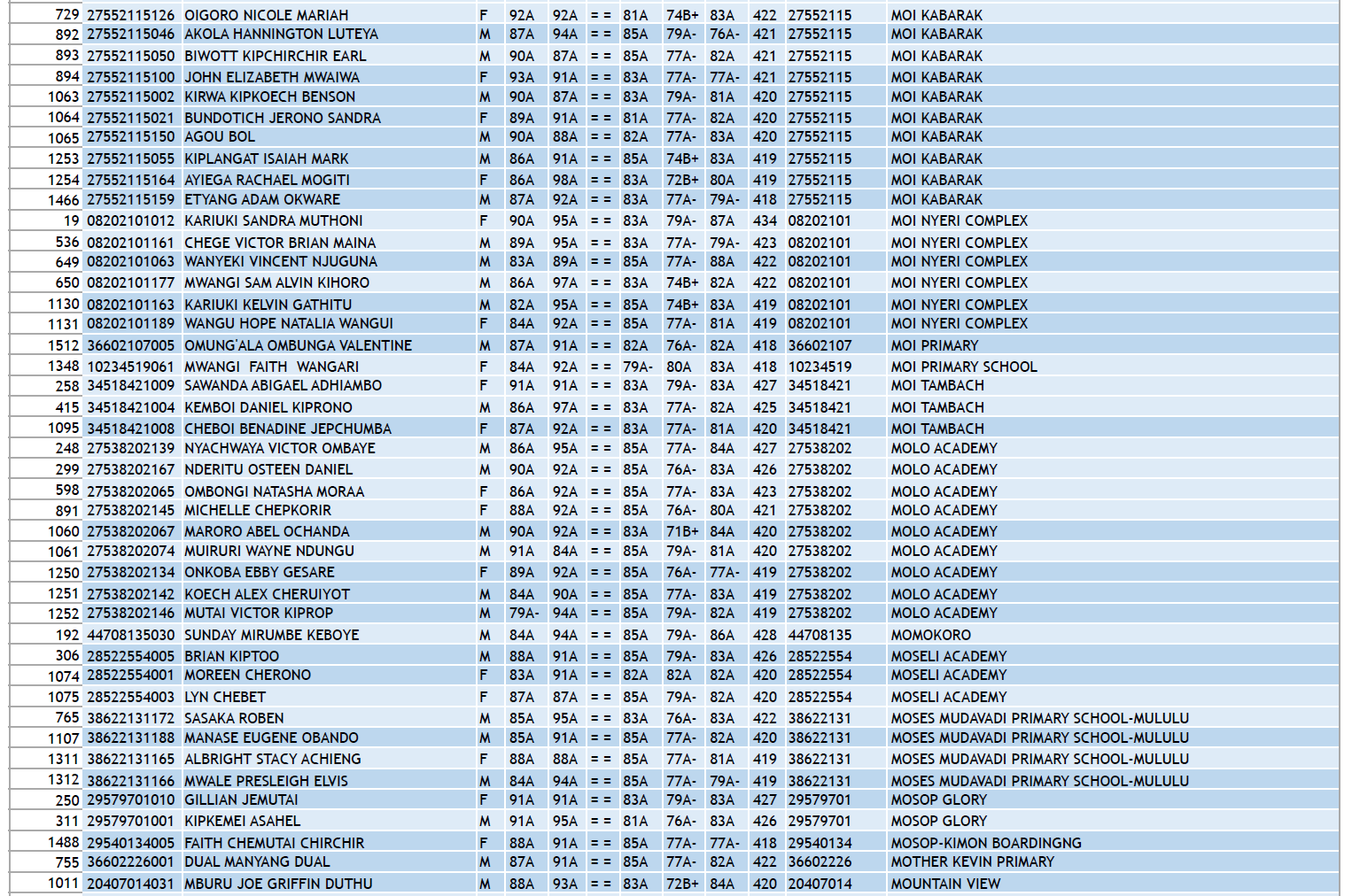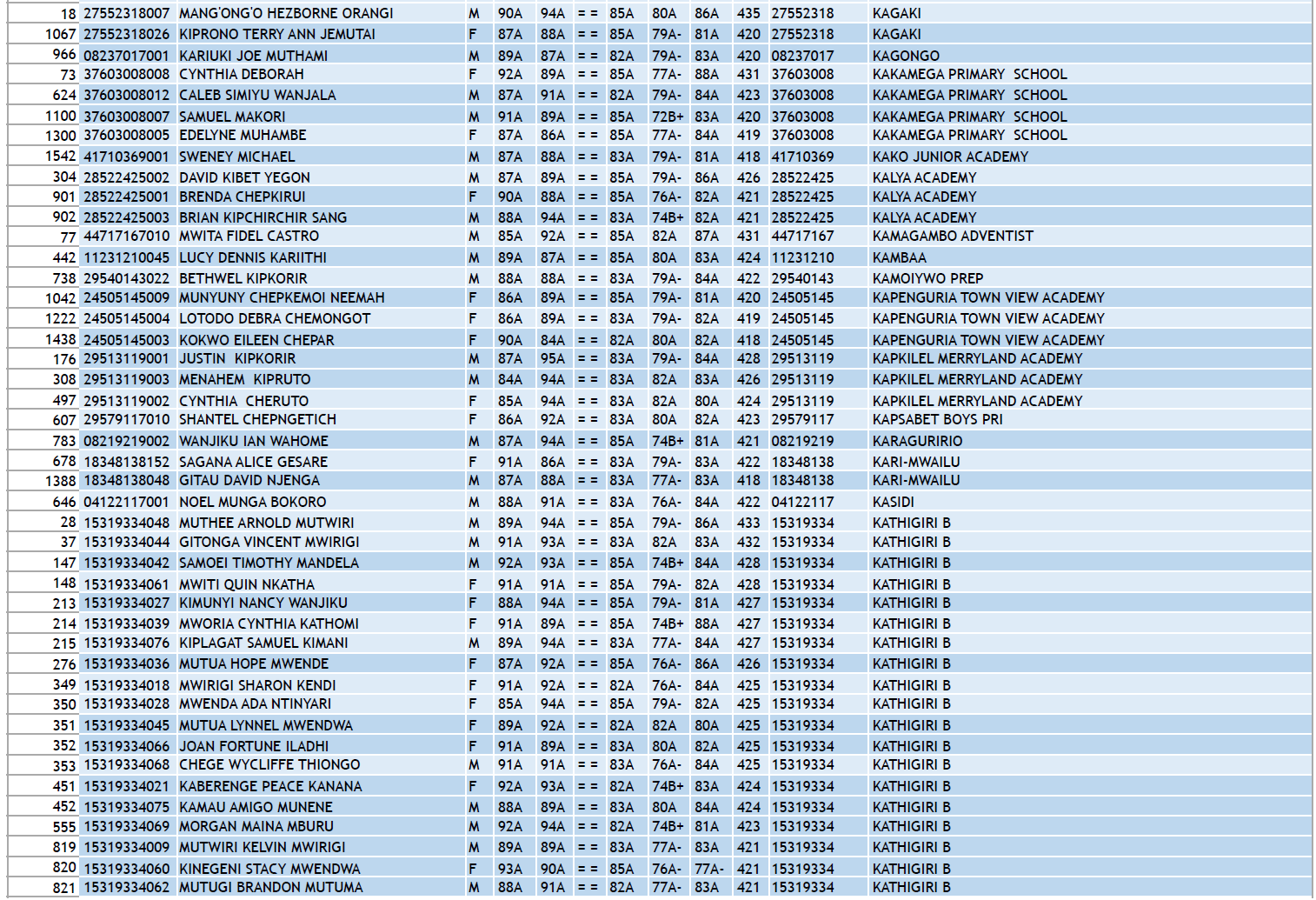 2022 KCPE Top 1000+ Candidates and Schools