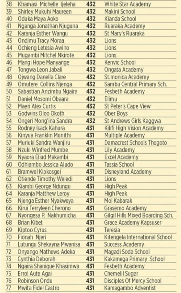2023 KCPE Results Top Students Nationally