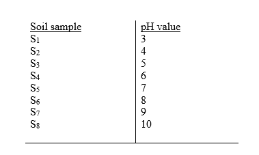 18. The table below shows pH values of different soil samples. Study it and answer the questions that follow.