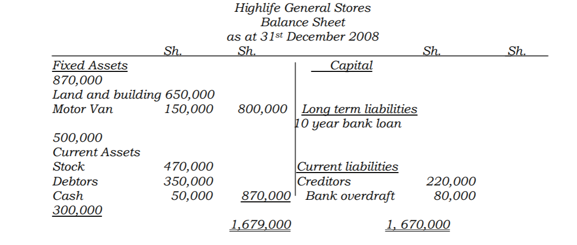 Required: Prepare the balance sheet of Highlife General Stores as at 31sI December 2015. (4 marks)