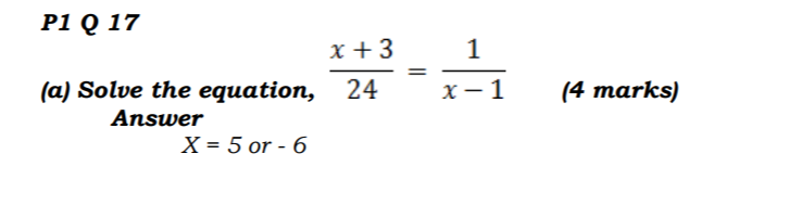Answer any five questions from this section in the spaces provided 17. (a) Solve the equation 3 — 1 24 x — 2