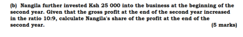 (b) Nangila further invested Ksh 25 000 into the business at the beginning of the second year.