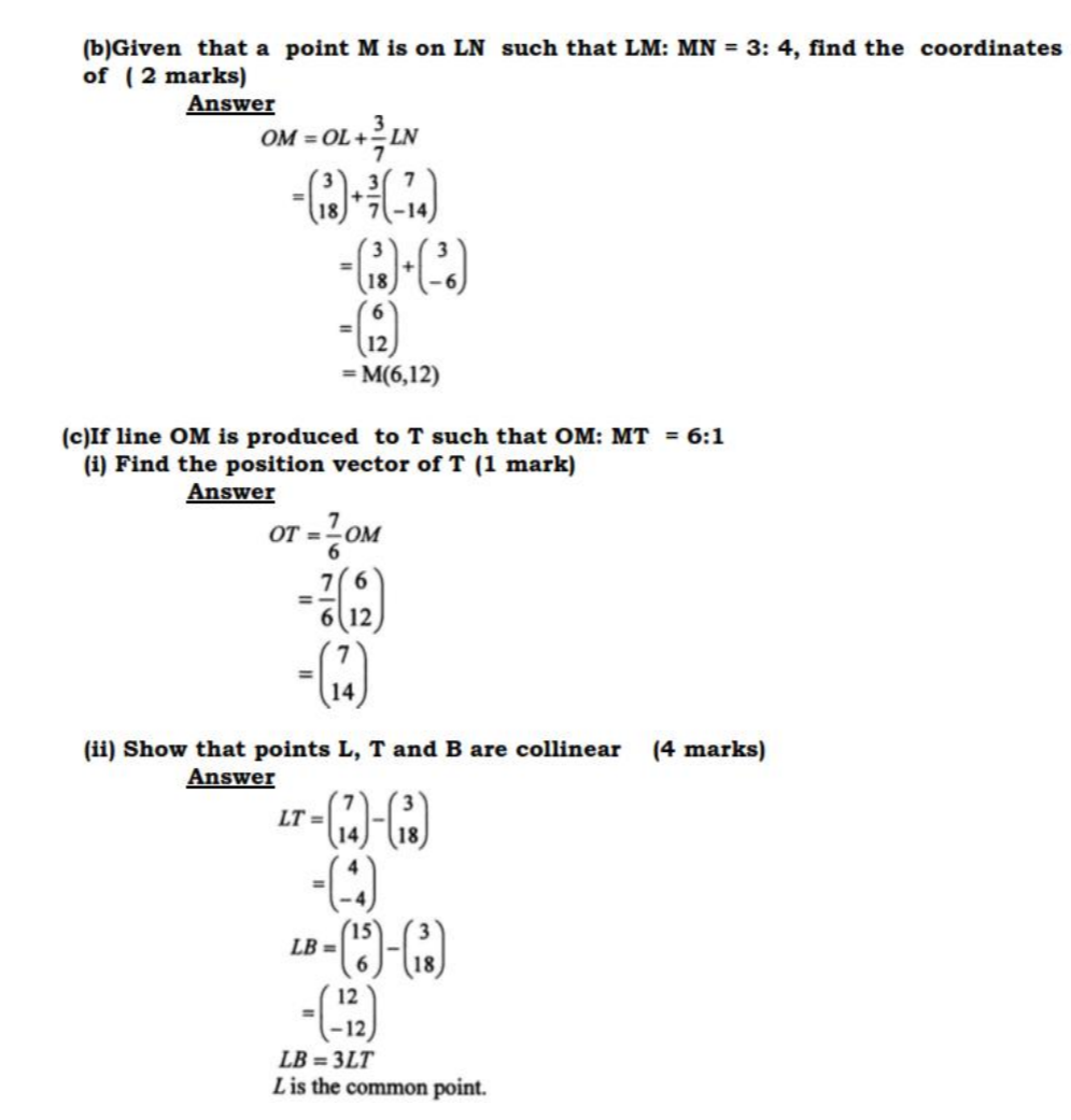 (b) Given that a point M is on LN such that LM:MN = 3:4, find the coordinate of M. (2 marks)