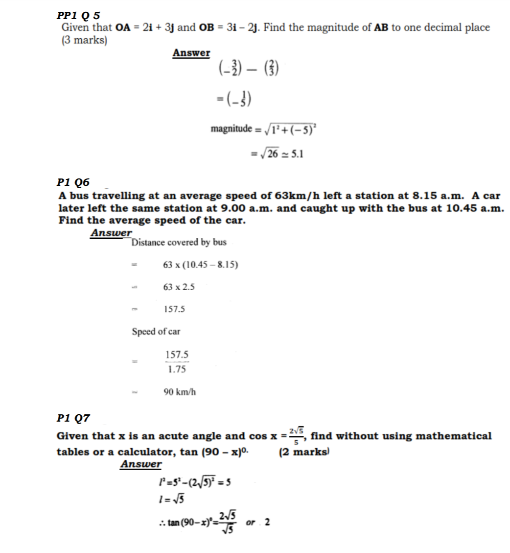 5. Given that OA = 2i + 3j and OB = 3i — 2j, find the magnitude of AB to one decimal place. (3 marks)