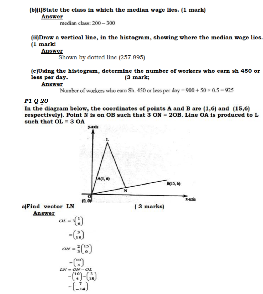 (c) Using the histogram, determine the number of workers who earn Sh 450 or less per day. (3 marks)