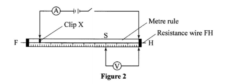 (h) Close the switch. Adjust the position of Clip X along FH until the current is 0.2A.