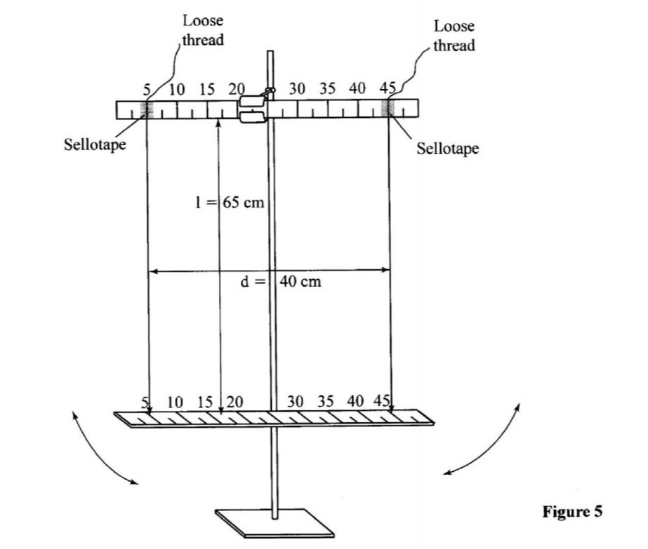 (a) Using the retort stand, clamp one half-metre rule at its centre, such that the scale is horizontal in a vertical plane (see Figure 5).
