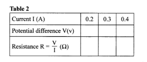 Repeat part (a) for the values of current in Table 2. Complete Table 2 (4 marks)