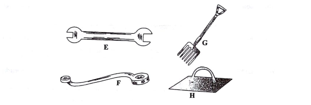 Answer all the questions in this section in the spaces provided. 17. The diagrams below represent farm tools and equipment.