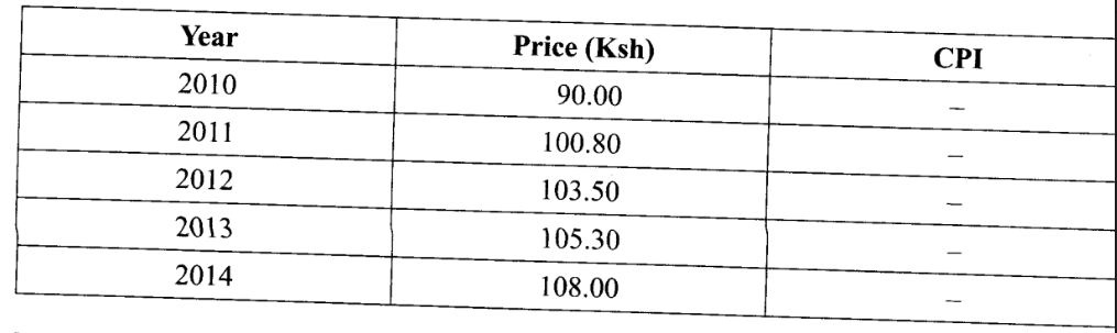 Using year 2010 as the base year, determine the consumer price index for years 2011, 2012,