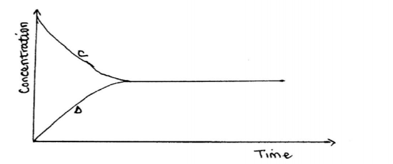 (b) The following equation is in a state of equilibrium: C D Use it to sketch a graphical representation of concentration against time in seconds for the equilibrium. (2 marks)