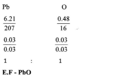 (b) The mass of lead was found to he 6.21g. Determine the empirical formula of the oxide. (Pb = 207.0 0 = 16.0) (2 marks)