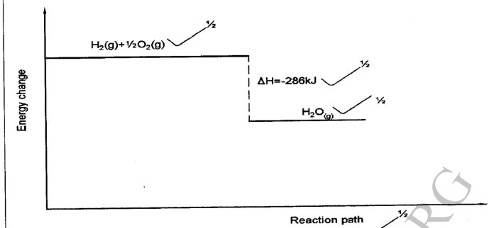 (b) Hydrogen gas burns in air to form water vapour, releasing 286kj of energy per mole.