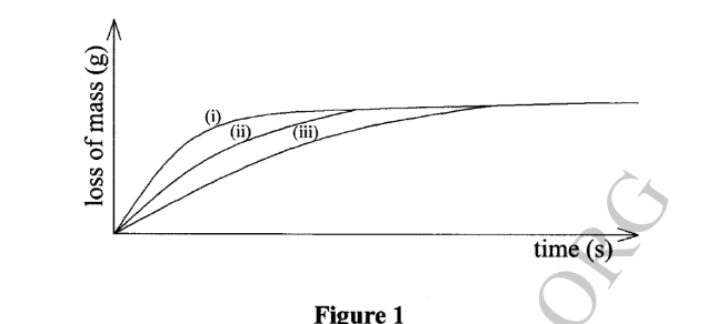 16. The diagram in Figure 1 shows curves obtained when equal amounts of zinc granules were reacted with different concentrations of hydrochloric acid. Study it and answer the questions that follow.