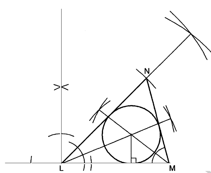 (a) a triangle LMN in which LM = 5 cm, LN = 5.6 cm and MLN = 450 .(2 marks)