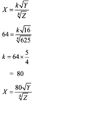21. Three quantities X, Y and Z are such that X varies directly as the square root ofY and inversely as the fourth root of Z. When X = 64, Y = 16 and Z = 625.