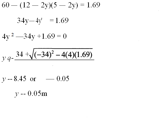 (b) The floor of the room was tiled leaving a border of width y m, all round. If the area of the border was 1.69m', find: