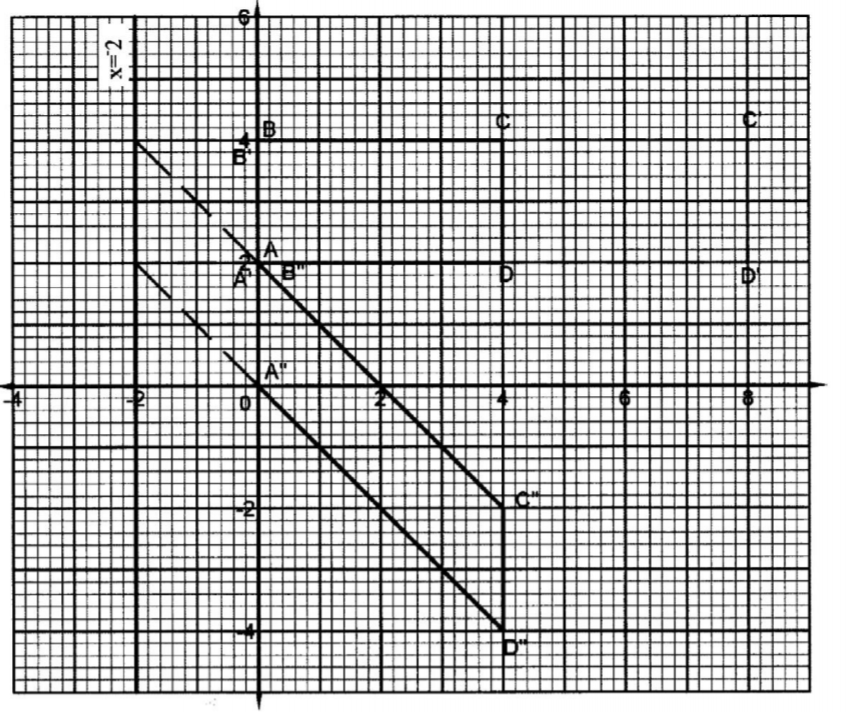 (b). On the same grid as in (a), draw the image of rectangle ABCD under a shear with line x — —2 invariant and A(0, 2) is mapped onto A”(0,0). (3 marks)