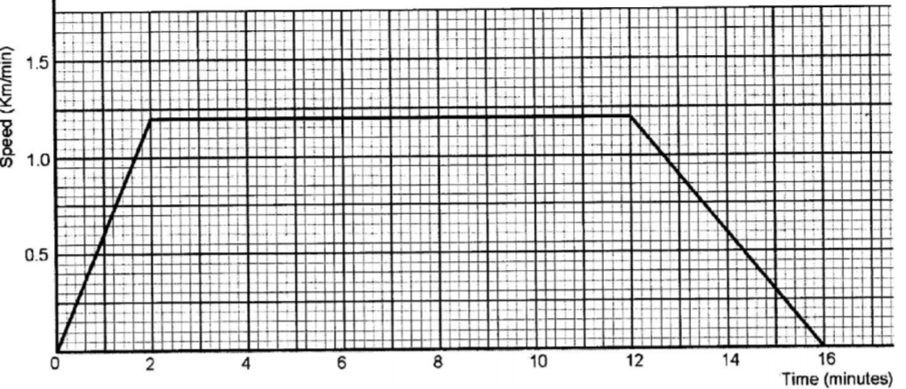 acceleration for 2 minutes and attained a speed of 1.2 km/minute. lt then maintained this speed
