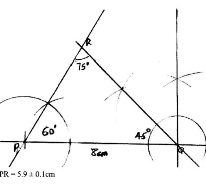 A RPQ = 60° and L PRQ = 75°. Measure PR. (4 marks)