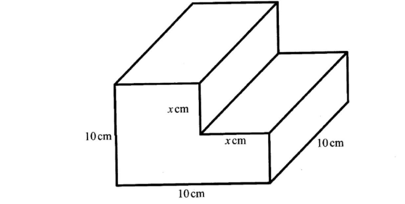 6. The diagram below represents a cube of side 10cm from which a cuboid measuring xcm by