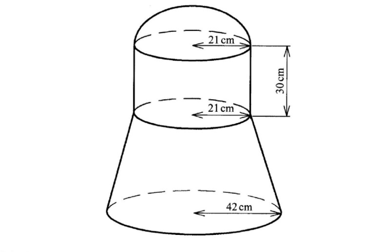 22. The figure below is a solid which consists of a frustum of a cone, a cylinder and a hemispherical top.