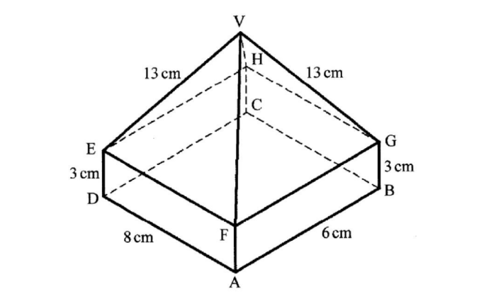 21. The figure below represents a right pyramid VEFGH mounted on a cuboid ABCDEFGH.