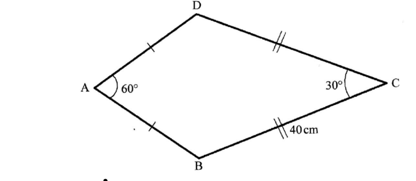 angle BCD = 30° and BC = DC = 40 cm. Side AB = AD.