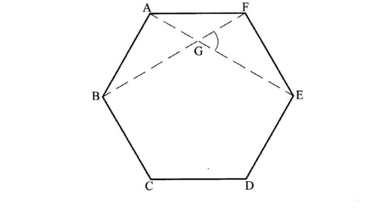 Figure ABCDEF is a regular hexagon. Line AE and BF intersect at G.