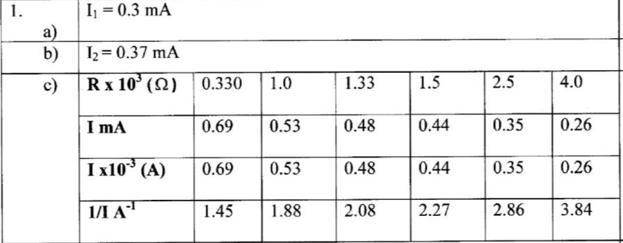 (c) Repeat the procedure in (b) for other values of resistance R shown in Table 1 and complete Table 1.