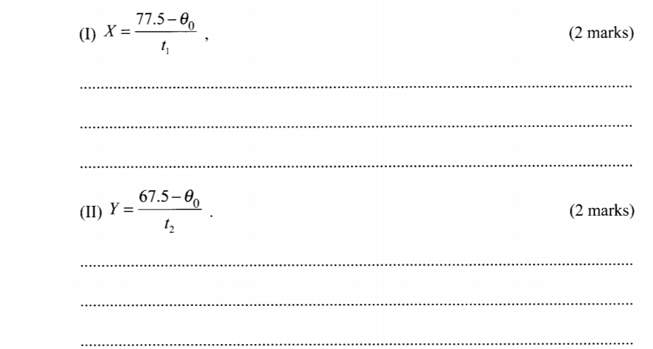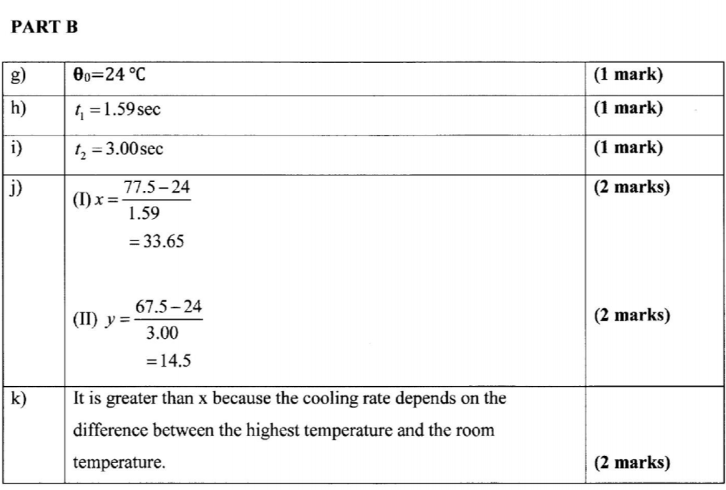 i) Wait until the water cools to 70°C then start the stopwatch and record the time t1 it takes the water to cool to 65°C. t2 seconds (1 mark)
