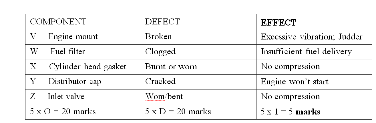 * Using the tools, equipment and the single cylinder engine provided, carry out the dry compression test. Make a comment about the readings obtained to the examiner. (10 marks)