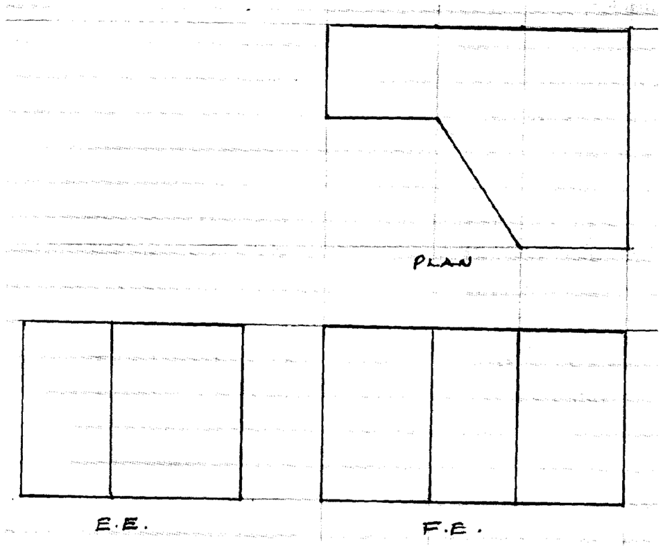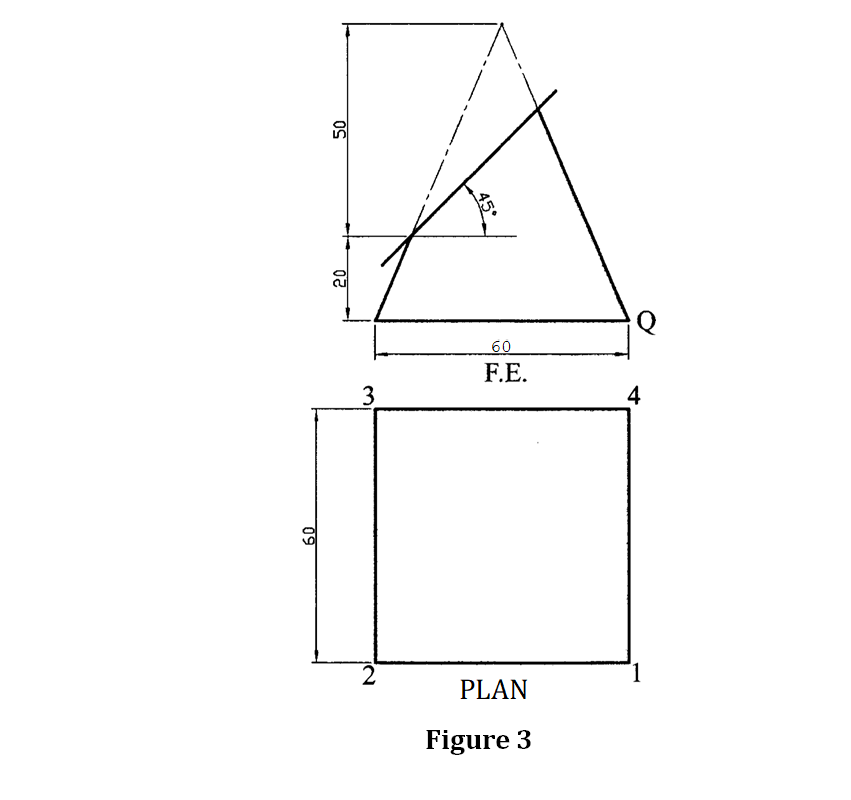 11 Figure 3 shows two views of a truncated square pyramid drawn in first angle projection.