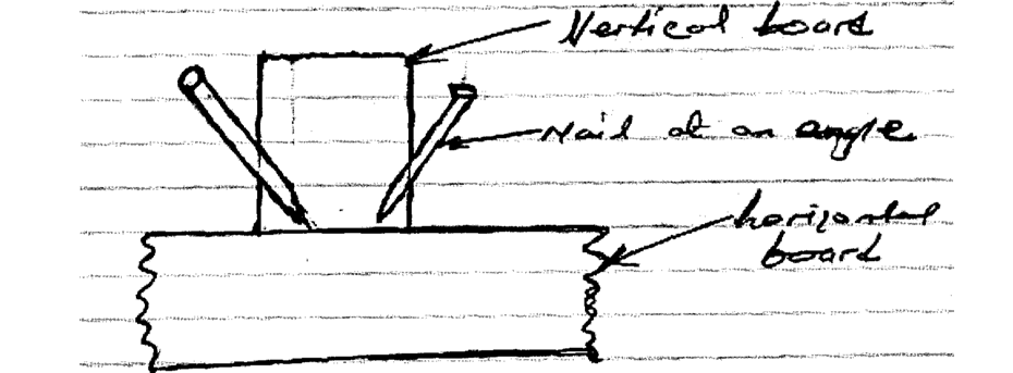 6 With the aid of a labelled sketch, explain the ‘toenailing’ method of driving nails. (4 marks)